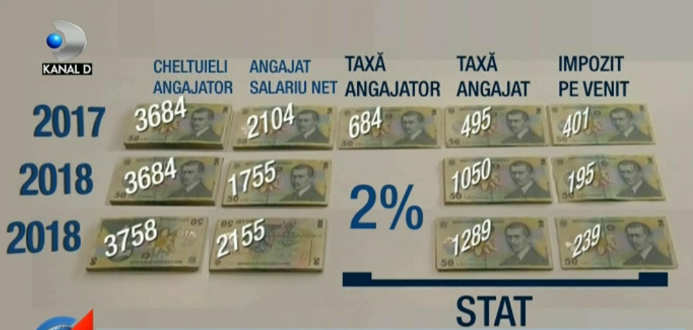 De anul viitor, cand obligatiile vor trece catre salariat, lucrurile nu se anunta prea roz. Daca salariatul ramane cu acelasi venit brut de 3 mii de lei, el va trebui sa plateasca taxe in valoare 1.050