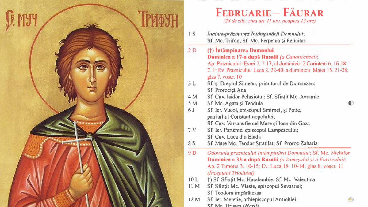 Pe 1 februarie 2025, în Calendarul ortodox este sărbătorit pe Sfântul Mucenic Trifon, un sfânt recunoscut pentru darul său de a vindeca bolnavii şi de a avea putere asupra demonilor.