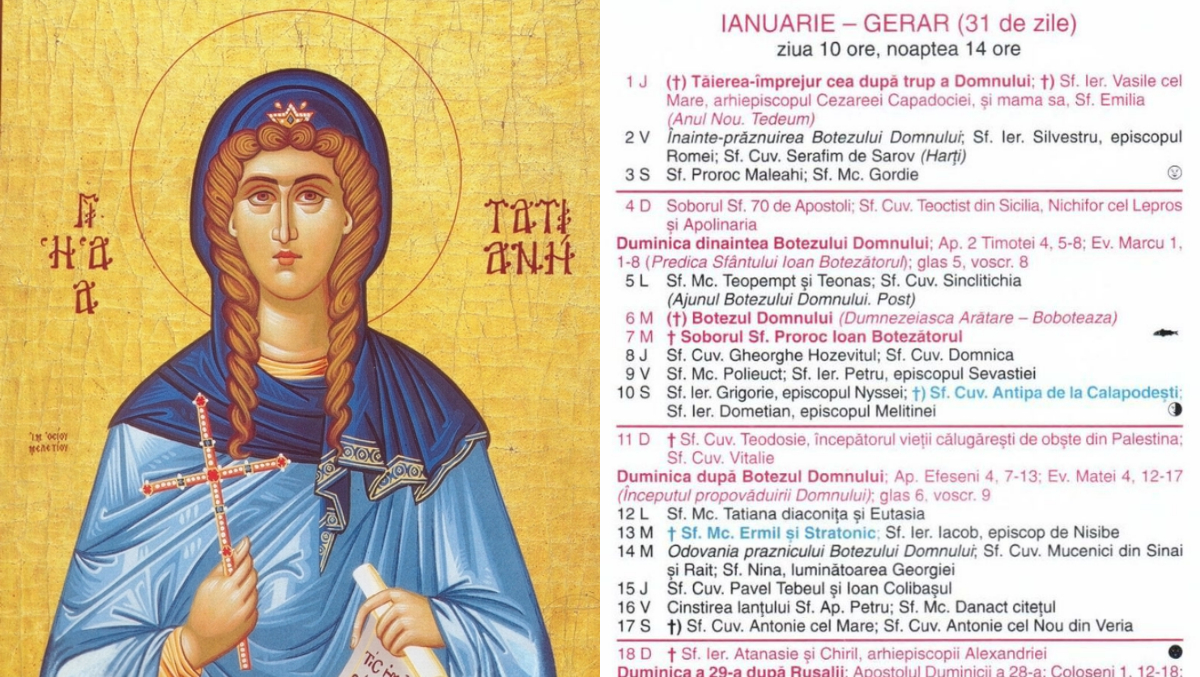În Calendarul ortodox, data de 12 ianuarie 2026 este dedicată Sfintei Mucenițe Tatiana, una dintre cele mai cunoscute martire ale Bisericii primare, cinstită pentru credința sa neclintită și pentru curajul mărturisirii lui Hristos în vreme de prigoană.