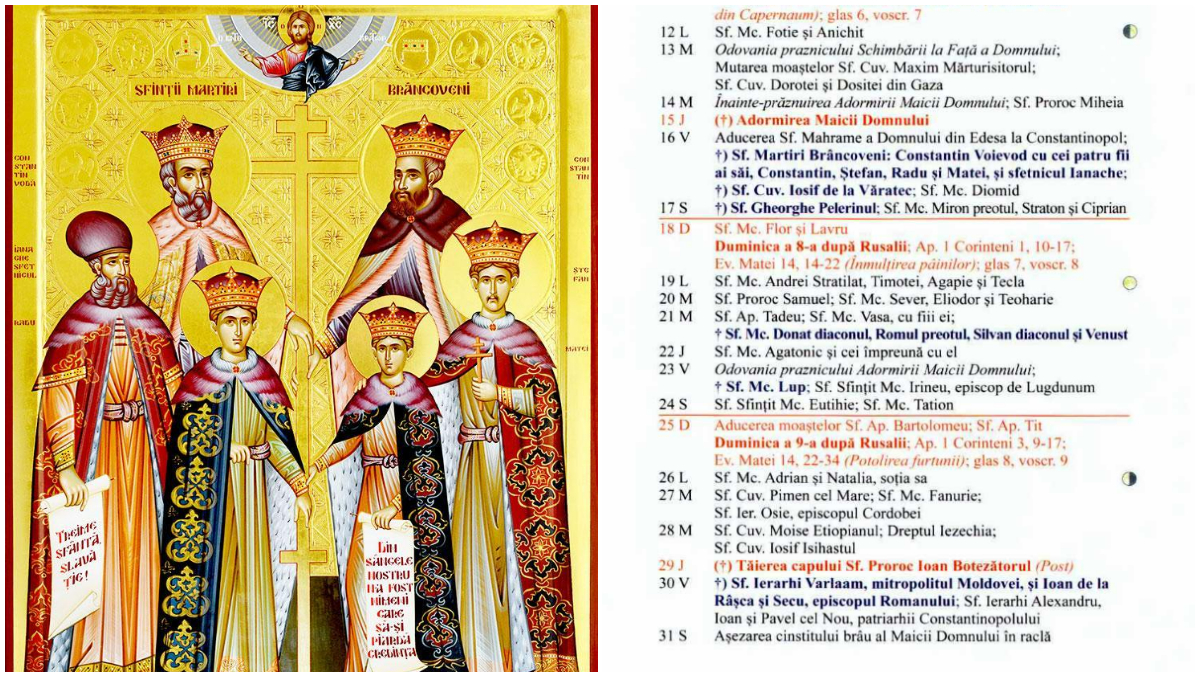 În Calendarul ortodox pe 16 august 2024 sunt sărbătoriți Sfinții Martiri Brâncoveni.