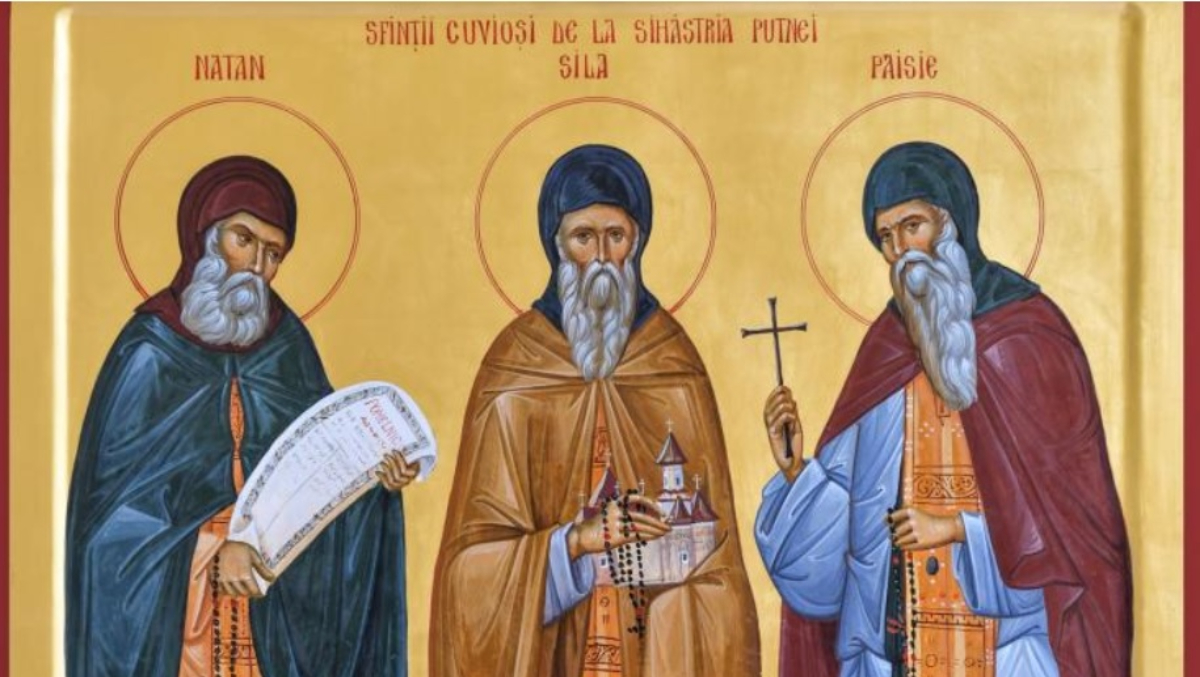 Biserica Ortodoxă îi sărbătorește pe Sfinții Cuvioși Sila, Paisie și Natan de la Sihăstria Putnei, potrivit doxologia.ro.