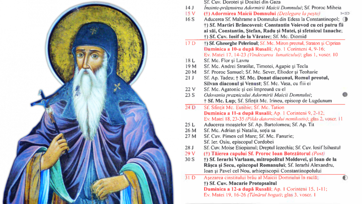 Află ce sărbătoare este în Calendarul ortodox pe 18 august 2025!