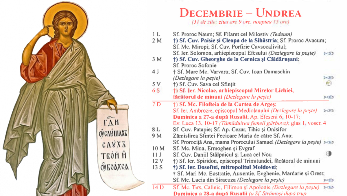 Află ce sărbătoare este în Calendarul ortodox pe 2 decembrie 2025!