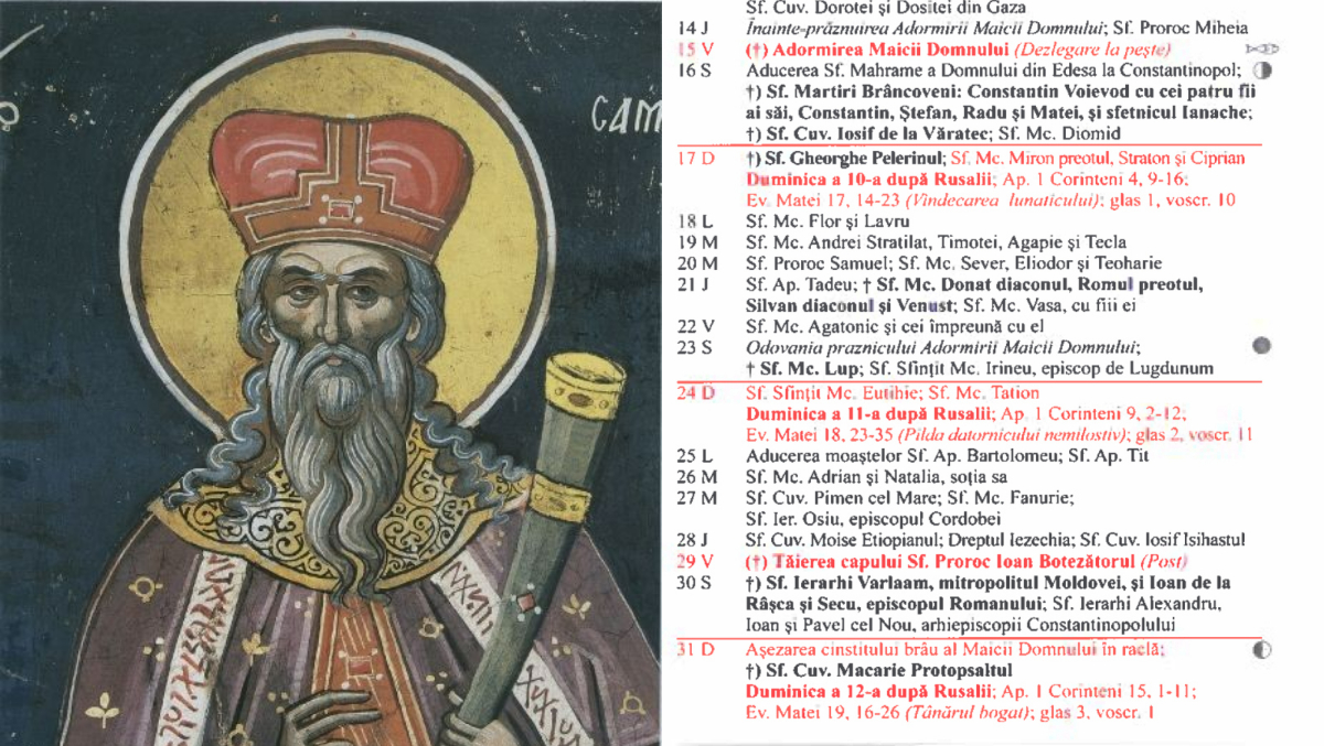 ”Prăznuind pomenirea prorocului Tău Samuel, Doamne, printr-insul Te rugăm, mânuiește sufletele noastre”