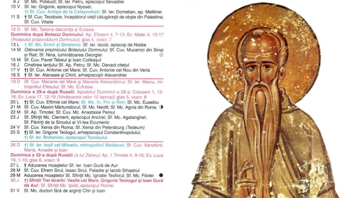 Pe data de 20 ianuarie 2025, în Calendarul ortodox, este prăznuit Sfântul Eftimie cel Mare, o figură de seamă a monahismului creștin, cunoscut pentru viața sa plină de sfințenie și pentru minunile săvârșite într-un timp de mari provocări pentru creștinism.