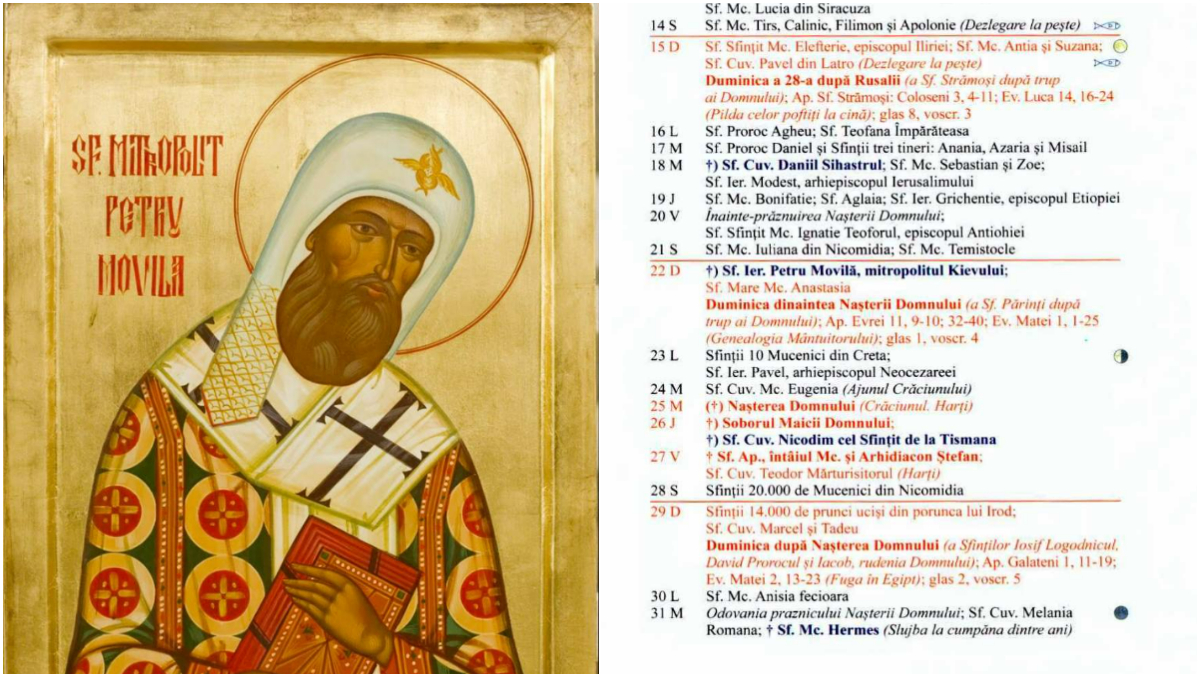 Pe 22 decembrie 2024, în Calendarul ortodox, este prăznuit Sfântul Ierarh Petru Movilă, Mitropolitul Kievului.