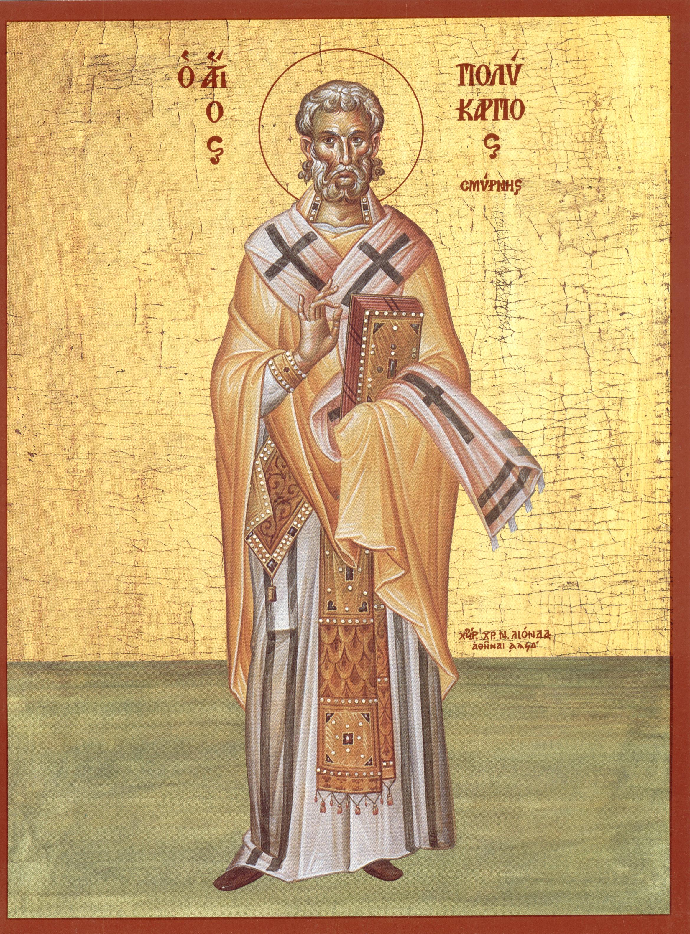 „Sfinte, de Dumnezeu fericite, Policarp, în rugăciunile tale cele de-a pururea pomenește-ne ca, revărsându-se milostivirea lui Dumnezeu peste noi, să ne învrednicim, mult roditorule, de cele spre viață ale Duhului roade: în inimă, dragostea: cu ochii privind către Dumnezeu, în cuget bucuria cea duhovnicească; mintea umplând-o cu neîncetată rugăciune, pacea în sufletul nostru; în piept așezând suspinarea pentru păcate, în toate îndelunga răbdare; chipului celui dinlăuntru, bunătatea, în mâini facerea de bine; în urechi punând ascultarea Sfintelor Scripturi, iar pe limbă mărturisirea adevărului, neclintiți întru dreapta credință; glasului, blândețea; pântecele pecetluit cu înfrânarea și în tot trupul curăția. Ca să ne învrednicim a fi moștenitori ai bucuriei celei veșnice și părtași ai Împărăției cerurilor. Amin.”