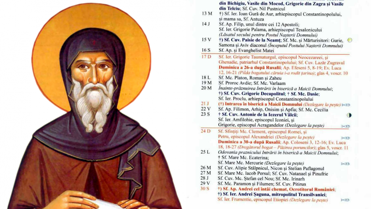 Află ce sărbătoare este în Calendarul Ortodox pe 23 noiembrie 2024! În jurul anului 1690, acest mare sfânt s-a retras într-o peșteră din Munții Iezer