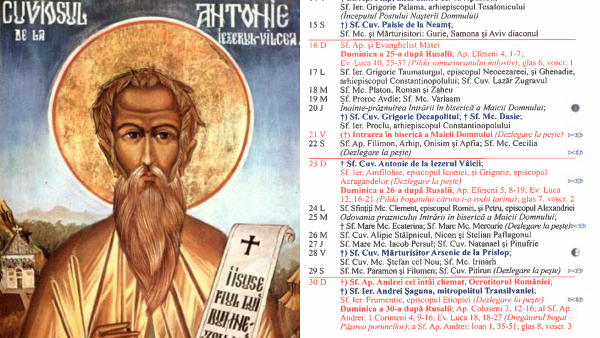 În fiecare an, pe 23 noiembrie, Calendarul Ortodox îl cinstește pe Sfântul Cuvios Antonie de la Iezeru Vâlcea, unul dintre cei mai iubiți sihaștri ai Olteniei, un model de viață ascetică și de rugăciune neîncetată. Astfel, și în 2025, această zi este dedicată pomenirii sale.