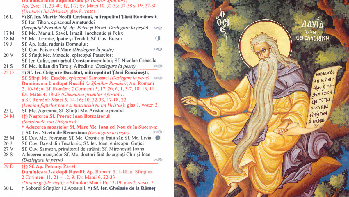 Pe data de 26 iunie 2025, Biserica Ortodoxă îl prăznuiește pe Sfântul Cuvios David din Tesalonic, un model de smerenie, nevoință și sfințenie care a trăit în secolul al VI-lea.