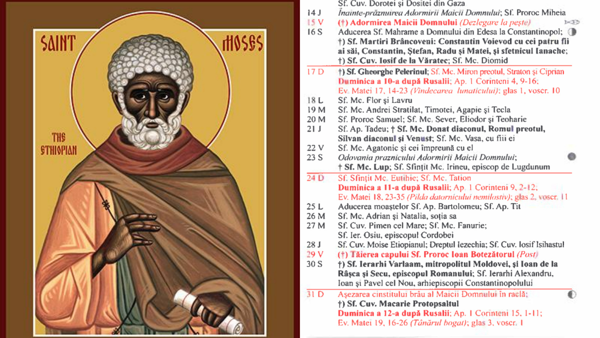Pe 28 august 2025, Calendarul ortodox îl prăznuiește pe Sfântul Cuvios Moise Etiopianul, cunoscut și sub numele de Moise Arapul sau Moise cel Negru. Viața acestui sfânt este una dintre cele mai impresionante pilde de pocăință și schimbare radicală, fiind un exemplu pentru toți cei care caută întoarcerea la Dumnezeu.