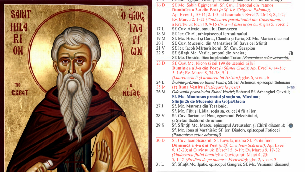 Pe 28 martie 2025, în Calendarul ortodox este sărbătorit Cuviosul Ilarion, starețul Mănăstirii Pelechit din Helespont, Asia Mică. Acest sfânt a fost un apărător neclintit al sfintelor icoane şi a suferit mucenicia pentru credința sa.