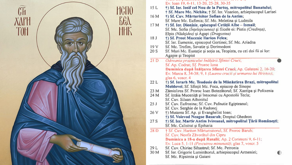 Pe 28 septembrie 2025, Calendarul ortodox îl prăznuiește pe Sfântul Cuvios Hariton Mărturisitorul, unul dintre marii mărturisitori ai credinței din primele veacuri creștine.