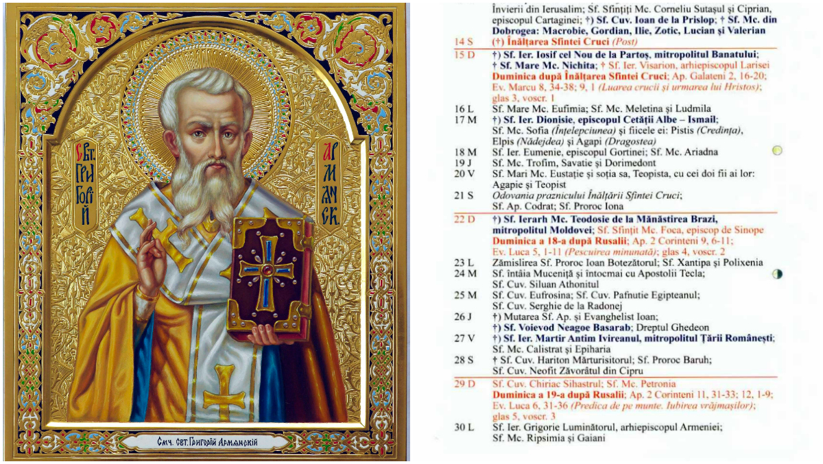 Pe 30 septembrie, Biserica Ortodoxă îl prăznuiește pe Sfântul Grigorie Luminatorul, cunoscut drept Apostolul Armeniei și cel care a creștinat poporul armean. Viața sa a fost una plină de nevoințe și suferințe, dar și de biruințe spirituale, reușind să convertească un întreg regat la creștinism.