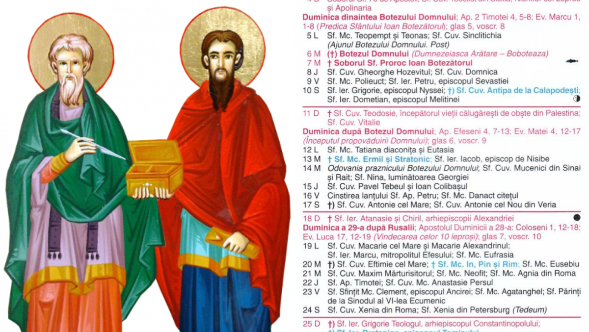 În Calendarul ortodox, ziua de 31 ianuarie 2026 este dedicată pomenirii Sfinților Mucenici Chir și Ioan, doi sfinți tămăduitori și apărători ai credinței creștine, care au trăit la sfârșitul secolului al III-lea și începutul secolului al IV-lea.
