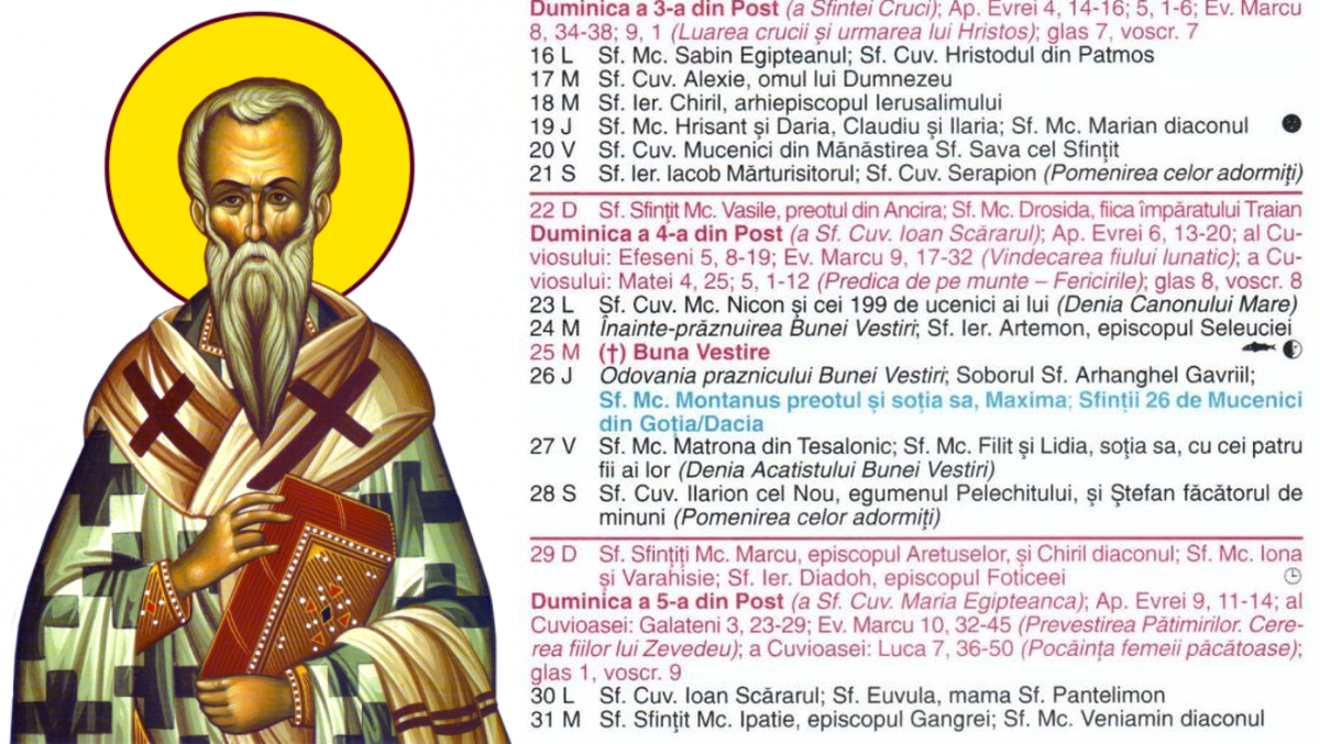 Află ce sărbătoare este în Calendarul ortodox pe 31 martie 2026!