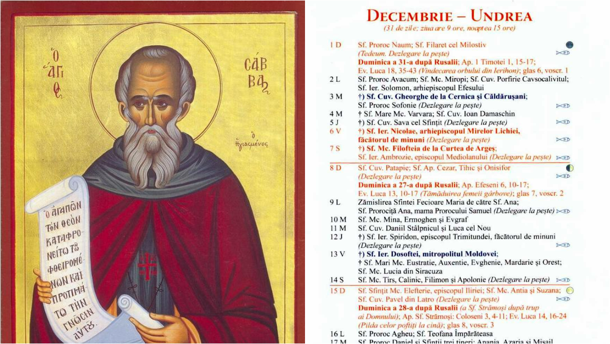 Pe 5 decembrie, în Ajunul Sfântului Nicolae, în calendarul ortodox este sărbătorit Sfântul Cuvios Sava cel Sfințit, un mare făcător de minuni și unul dintre cei mai importanți sfinți ai Bisericii Ortodoxe.