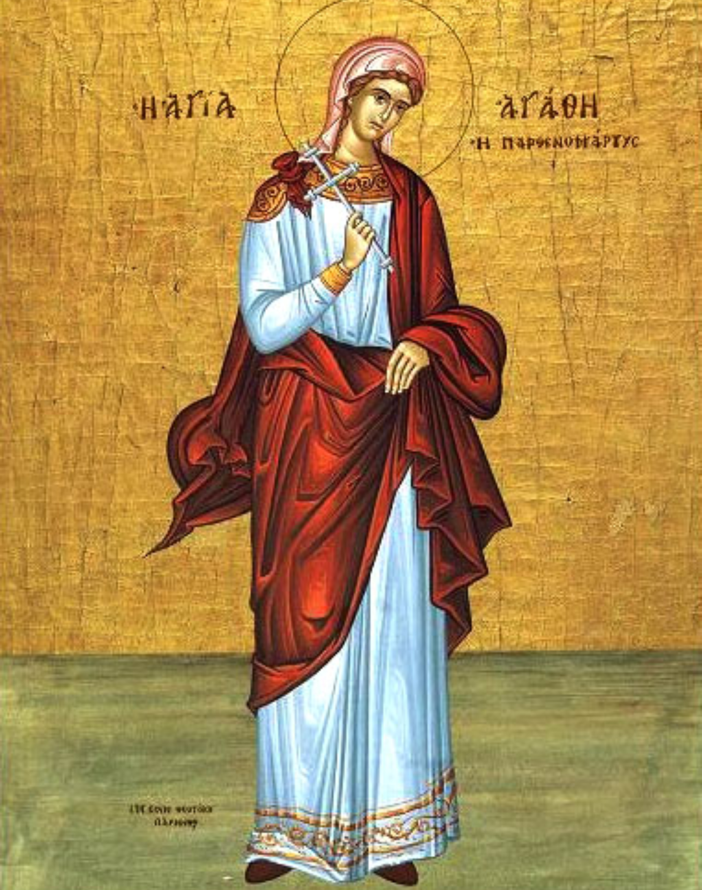 Sfânta Muceniță Agata a murit în temniță. Ea este considerată a fi ocrotitoarea femeilor bolnave de cancer la sân, datorită vindecării sale miraculoase.