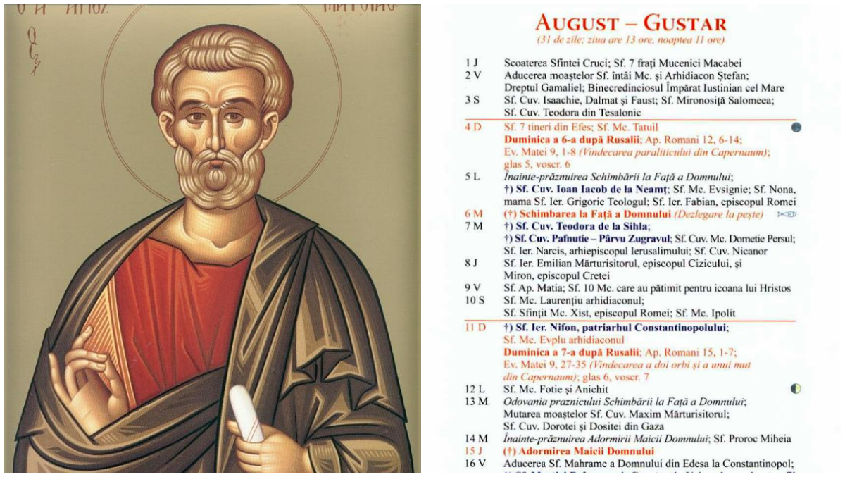 În Calendar ortodox, pe 9 august 2024, este sărbătorit Sfântul Apostol Matia.