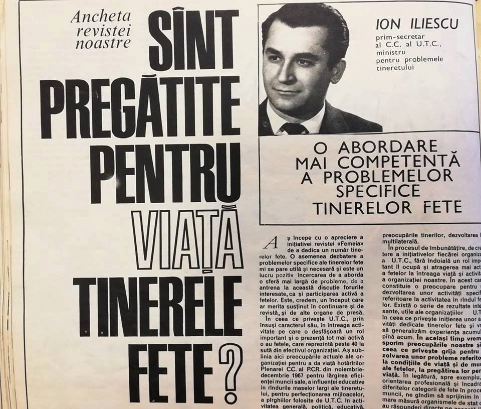 În martie 1968, viitorul preşedinte Ion Iliescu aborda în revista Femeia problema tinerelelor fete din regimul comunist.