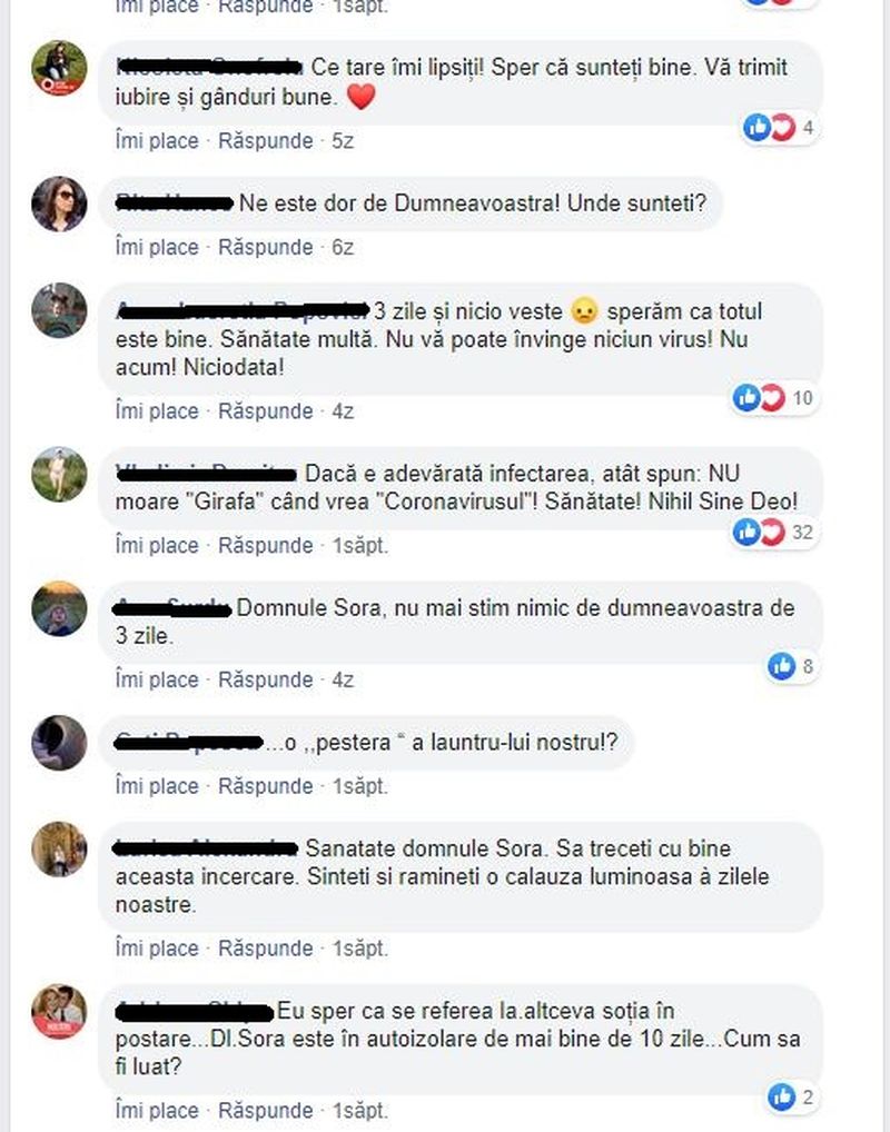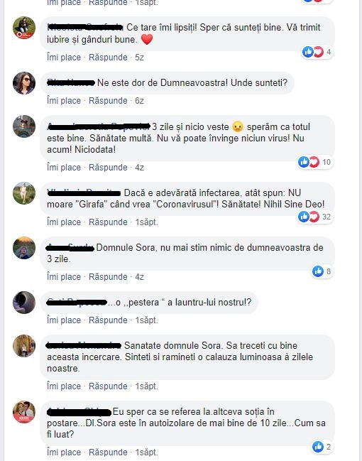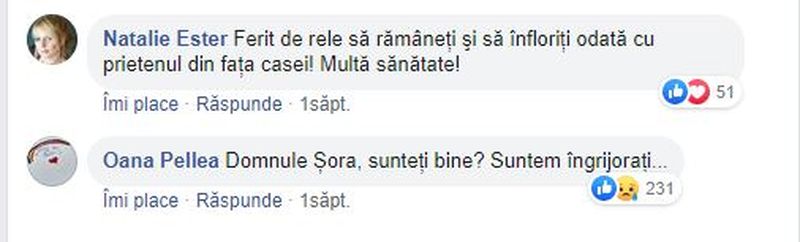 De la respectiva postare a trecut o săptămână, timp în care Mihai Șora nu a mai postat nimic pe Facebook, deși își obișnuise prietenii virtuali să fie activ zilnic. Așa că, după postarea soției sale la care s-a adăugat ”tăcerea virtuală” a celor doi, sute de mesaje au invadat Facebook-ul lui Mihai Șora.
