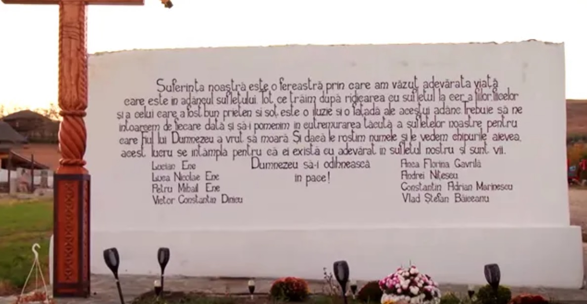 „Suferința noastră este o fereastră prin care am văzut adevărata viață care este în adâncul sufletului. Tot ce trăim după ridicarea cu sufletul la cer a fiilor, a fiicelor și a celui care a fost bun prieten și soț este o iluzie și o fațadă ale acestui adânc. Trebuie să ne întoarcem de fiecare dată și să-i pomenim în cutremurarea tăcută a sufletelor noastre pentru care Fiul lui Dumnezeu a vrut să moară. Și dacă le rostim numele și le vedem chipurile aievea, acest lucru se întâmplă pentru că ei există cu adevărat în sufletul nostru și sunt vii. Dumnezeu să-i odihnească în pace!”, este mesajul de pe piatra funerară.