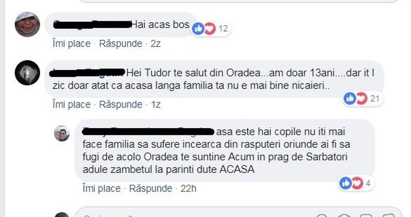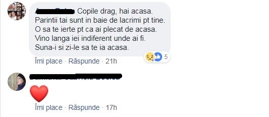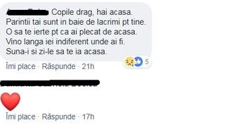 Alţii îl îndeamnă pe adolescent să dea un semn familiei, care e disperată. ”Nu-ţi mai face familia să sufere.