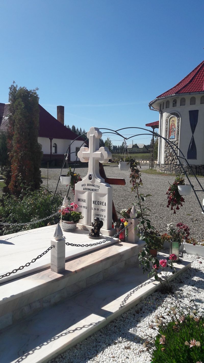 Parintele Mihai Negrea a fost inmormantat in curtea manastirii, asa cum si-a dorit, chiar langa biserica noua pe care a sfintit-o la inceputul lunii noiembrie a anului trecut.