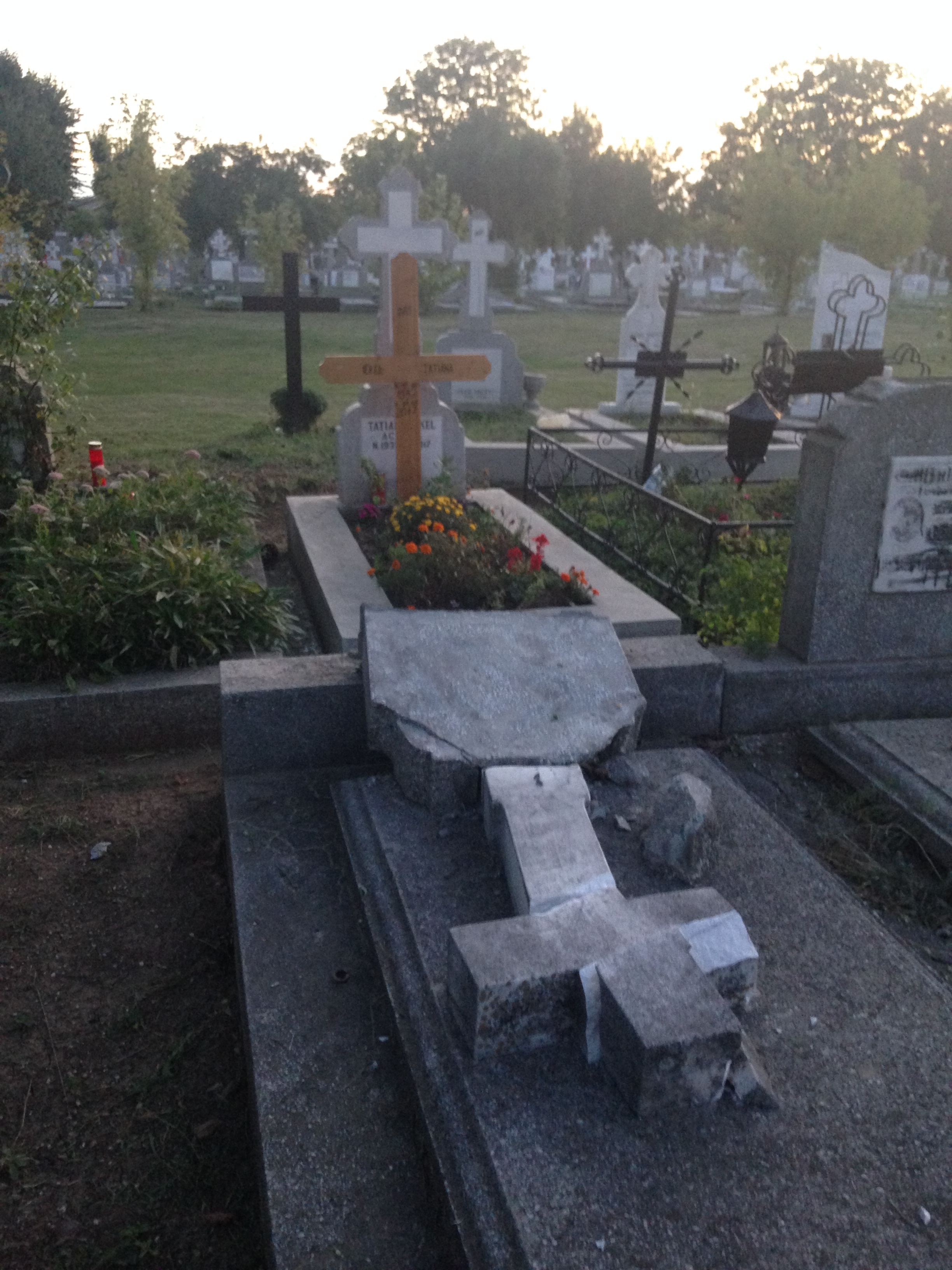 „Mormintele din fata celui al Tatianei Iekel sunt foarte vechi, s-au deteriorat odata cu trecerea anilor. Piatra incepuse sa cedeze, crucile erau din piatra. Vijelia le-a daramat, le-a pus la pamant. S-au spart peste locurile de veci ale celor doua persoane. S-au dus spre fata. Daca se duceau spre spate cadeau peste mormantul Tatianei si praf il faceau. Il distrugeau si pe al ei. Apoi era mai complicat de reparat, plus ca cine suporta cheltuielile.