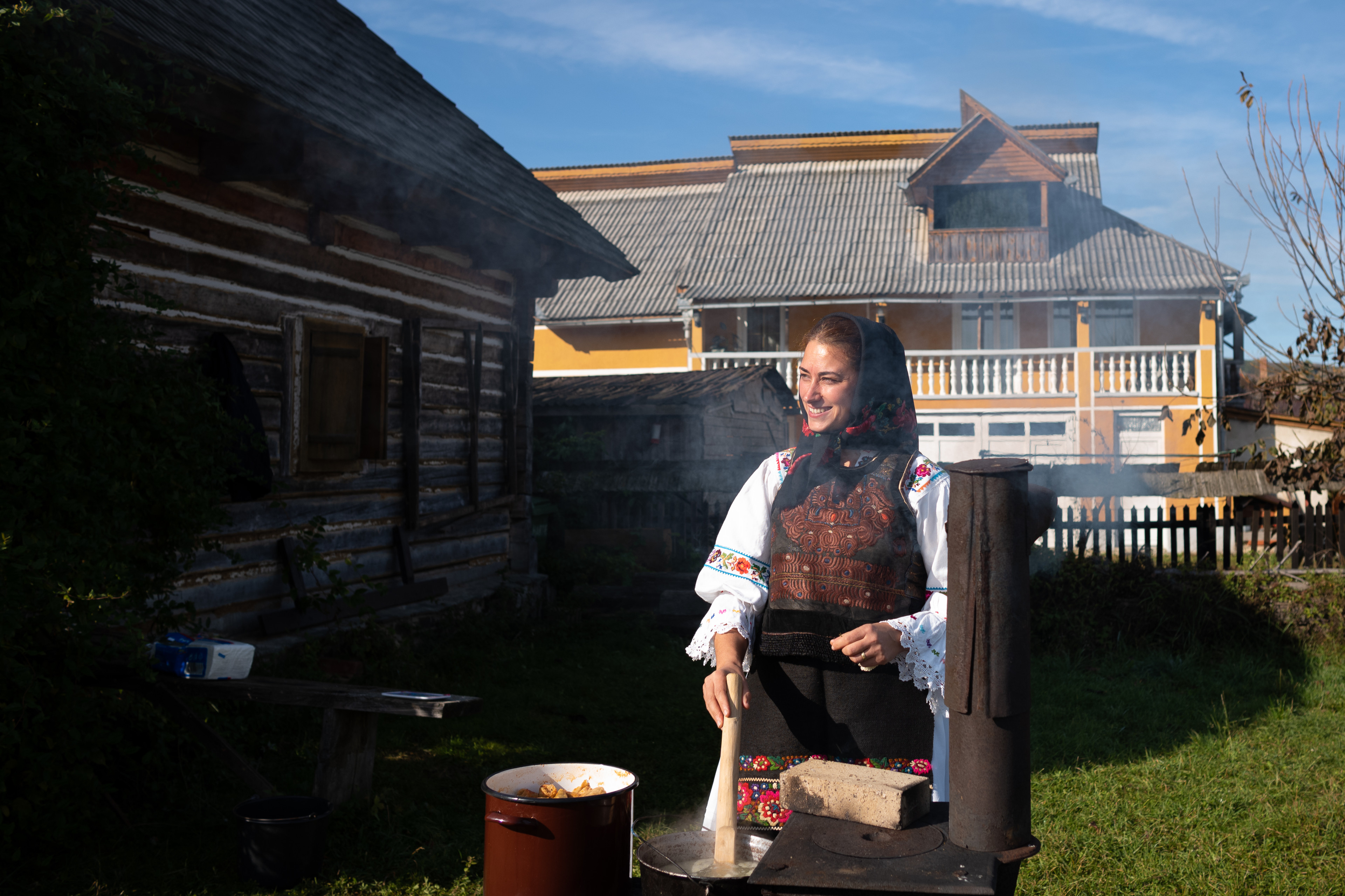 - Pâinea de casă, frământată în covată și coaptă în cuptor de cărămidă, însoțește toate mesele.