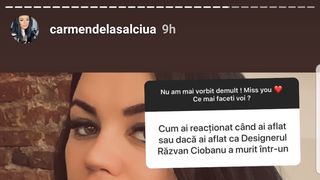 Sinceră, directă şi asumată, Carmen de la Sălciua are o relație specială cu fanii ei de pe rețelele de socializare. Pe Instastory, îndrăgita artistă de muzică de petrecere le răspunde admiratorilor ei la toate curiozitățile atâta vreme cât sunt exprimate în limita bunului simț. Întrebată de mai multi admiratori ce crede despre moartea lui Răzvan Ciobanu, artista a dat un răspuns neașteptat.