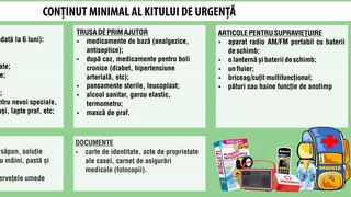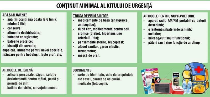 Rezerva sau rucsacul pentru situaţii de urgenţă conţine obiecte care vă ajuta pentru 3-5 zile, în cazul în care este nevoie să părăsiţi locuinţa. Din ce este constituită această rezervă (conținut minim):