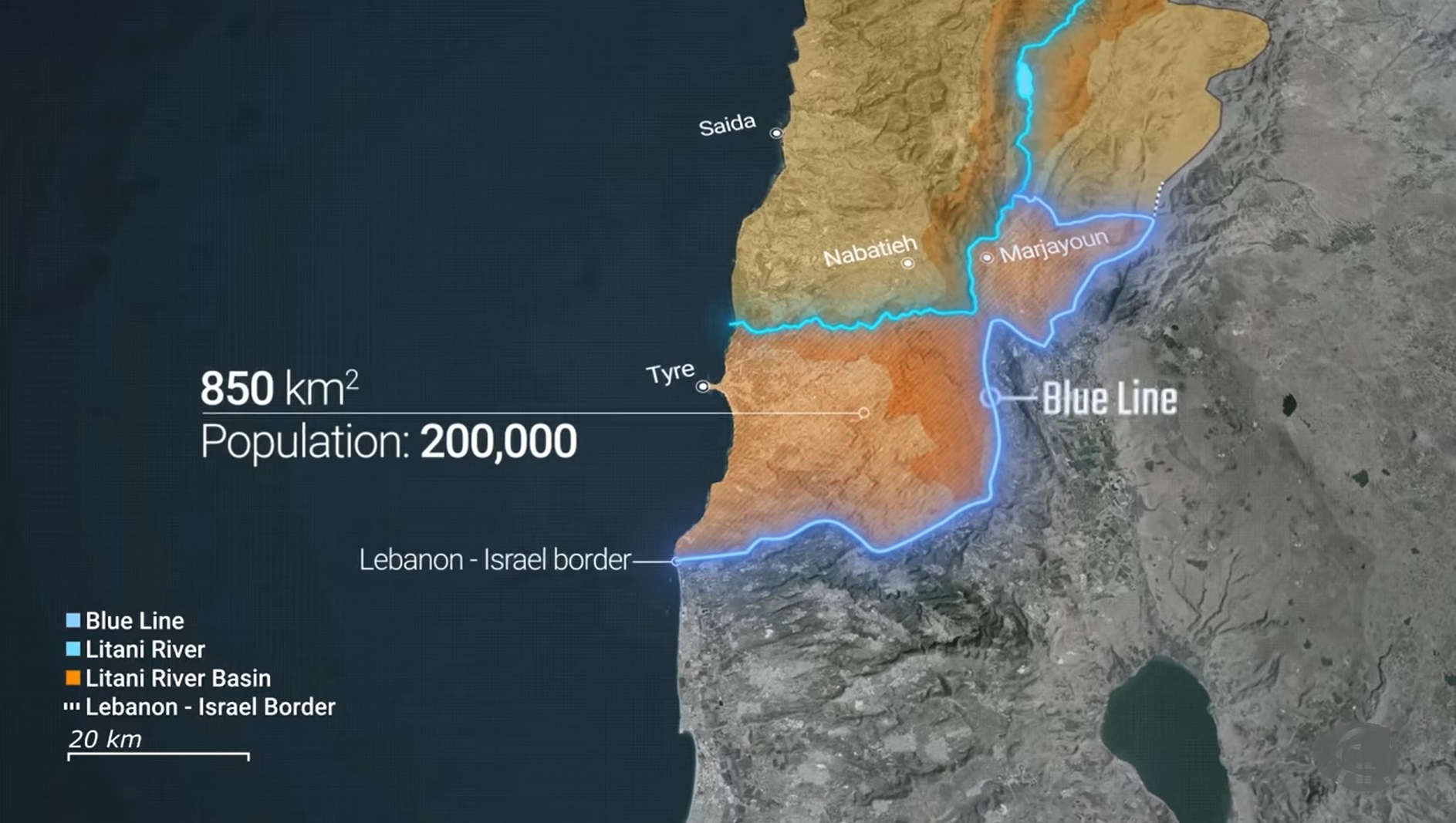 Regiunea din Liban pe care Israelul vrea să o controleze și după războiul cu Iranul are o suprafață de 850 km. pătrați și o populație de aprox. 200.000 de locuitori, care ar urma să fie mutați la nord de râul Litani.