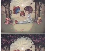 Cei care nu au văzut imaginea de la bun început, o pot zări mai bine de la distanță. Capul fetiței și fluturele sunt ochii craniului, iar dinții sunt pantalonașii fetiței: