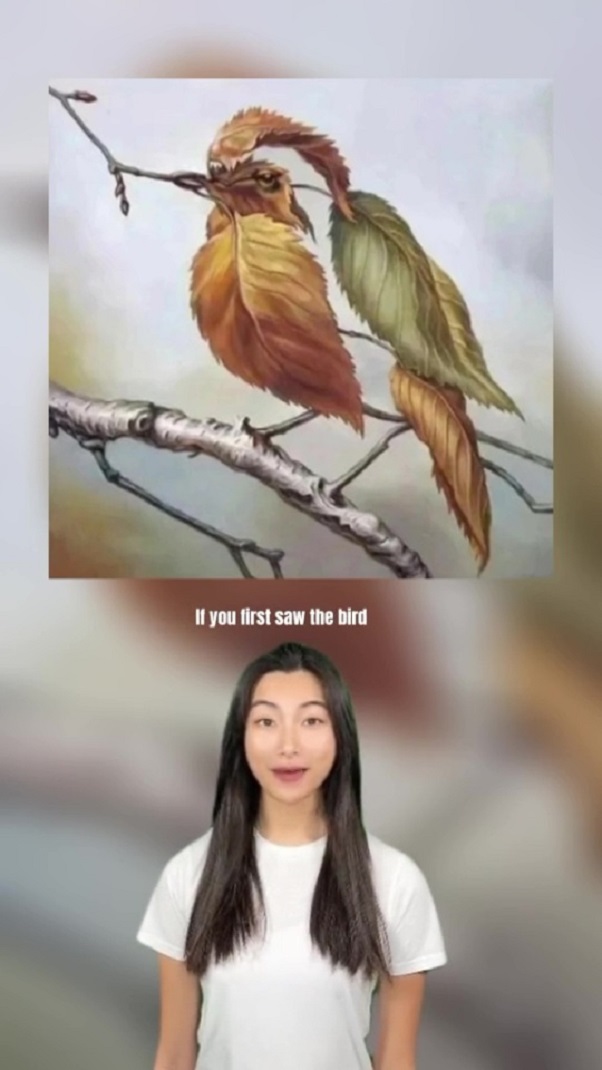 Mia Yilin, o influenceră foarte cunoscută pe TikTok, a împărtășit urmăritorilor ei o imagine de toamnă care poate fi interpretată în două moduri- ca o pasăre sau ca o grămadă de frunze.