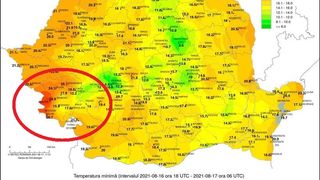 La polul opus, minima nopții a coborât la temperatura de +6,8 grade la Obârșia Lotrului. România se află sub cod portocaliu de caniculă, temperaturile urcând la peste +40 C în zonele din sud ale țării, dar începând de mâine, vremea se va răci treptat.