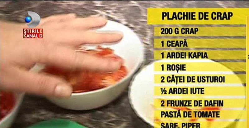 Astazi e dezlegare la peste, asa ca, daca nu ati apucat sa pregatiti ceva delicios, avem o propunere pentru dumneavoastra: o plachie de crap. In jumatate de ora masa este gata, iar rezultatul e fabulos! ##VIDEO35299##