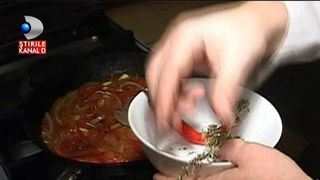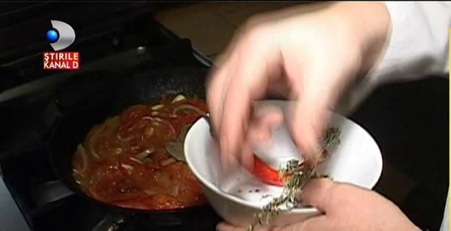 Ingredientul-minune, pe care doar cei crescuti la malul Dunarii il stiu, este supa in care ati fiert celelalte bucati de crap. Puneti, cu incredere, cateva polonice in tigaie, iar apoi adaugati foile de dafin si pasta de tomate.