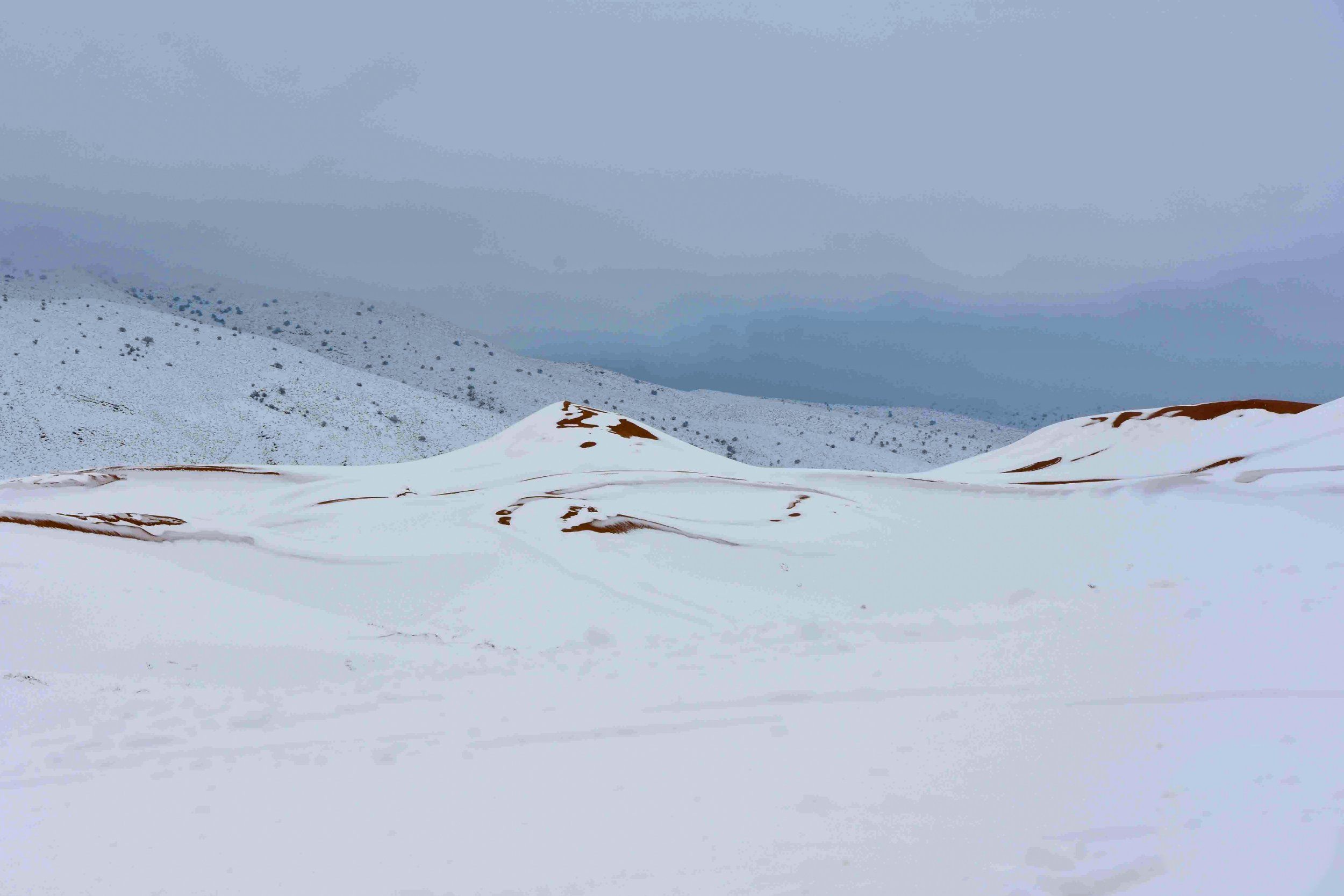 3 din 4 | Cea mai mare ninsoare din ultimele decenii a transformat complet desertul Sahara. Imagini spectaculoase!
