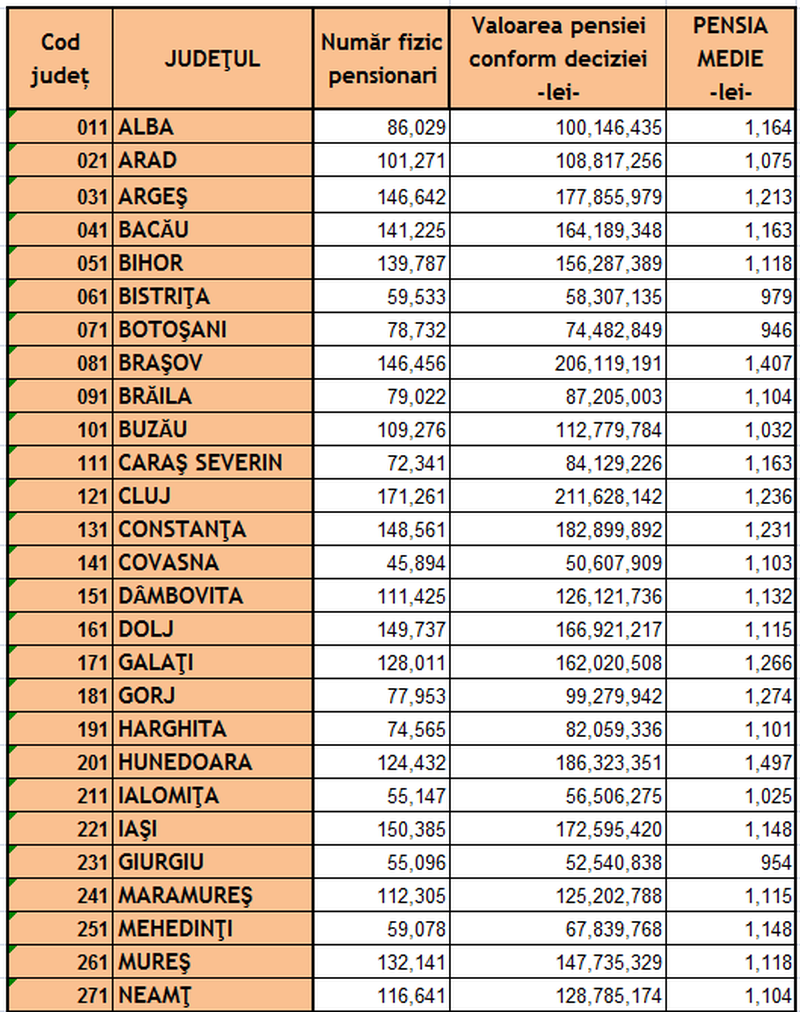 Și în Bistrița, Satu Mare, Vaslui, Vrancea și Călărași pensia medie nu depășește 1000 de lei lunar.