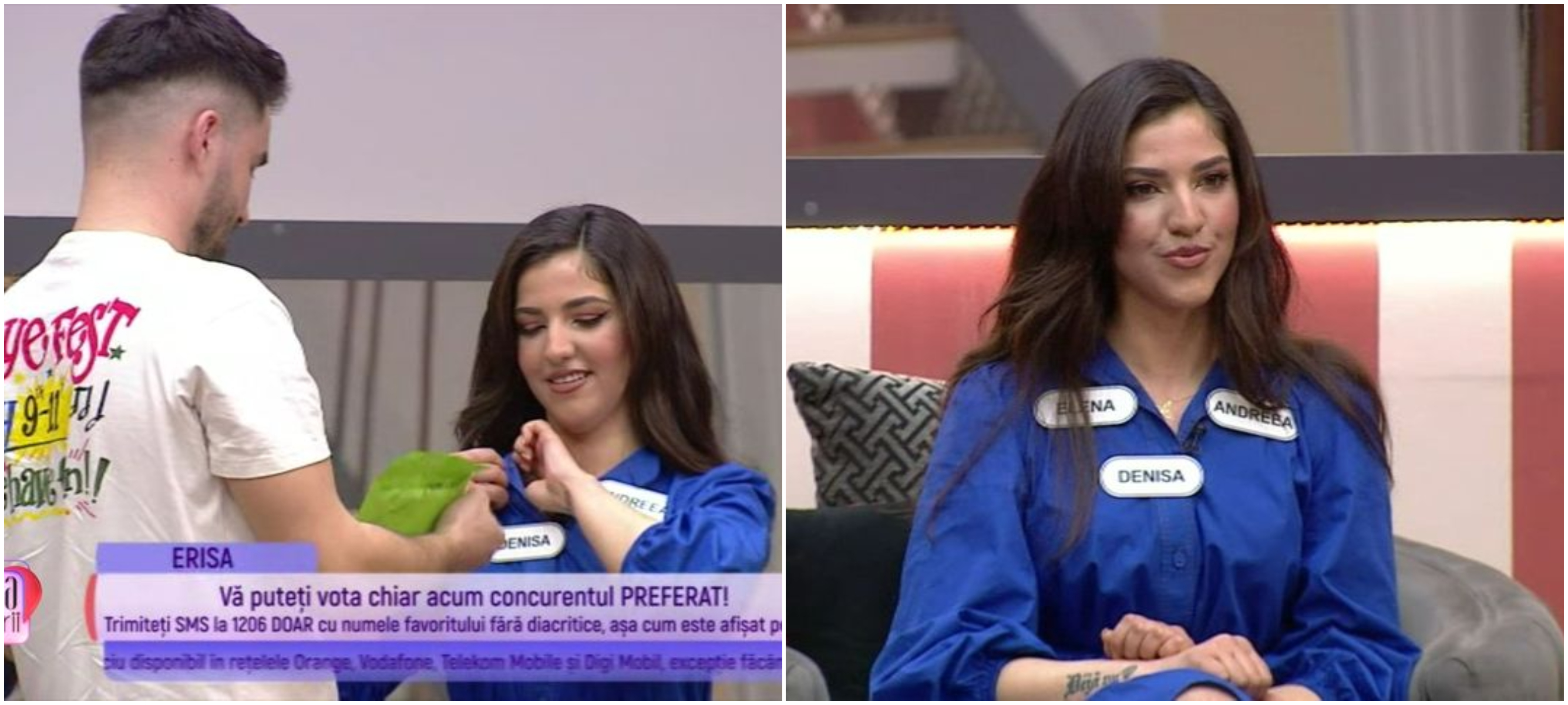 Tânăra era emoționată și încântată atunci când s-a întâlnit pentru prima dată cu Marinel. Bruneta l-a întâmpinat cu un zâmbet larg pe buze, iar concurentul a fost uluit de prezența ei. Inițial, el și-a dorit să afle cum o cheamă, dar tânăra avea pe piept trei nume: Elena, Denisa și Andreea. Erisa i-a cerut lui Marinel să aleagă ce nume îi place.
