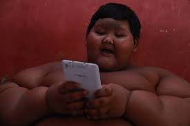 Baiatul din vestul Provinciei Java din Indonezia a renuntat la scoala pentru ca nu mai putea merge. Nici haine nu mai are. Mama lui, spune ca ar manca incontinuu.