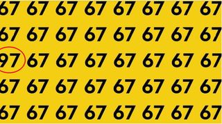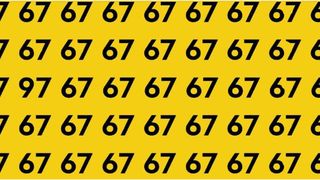 În imaginea de mai jos, numărul 97 se ascunde printre multe repetiții ale numărului 67. Poți găsi intrusul în maxim 10 secunde?