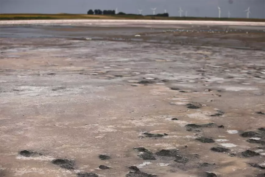 Adâncimea lacului, chiar şi în anii ploioşi, nu depăşea jumătate de metru. Acum, lacul s-a transformat într-un câmp de minerale.