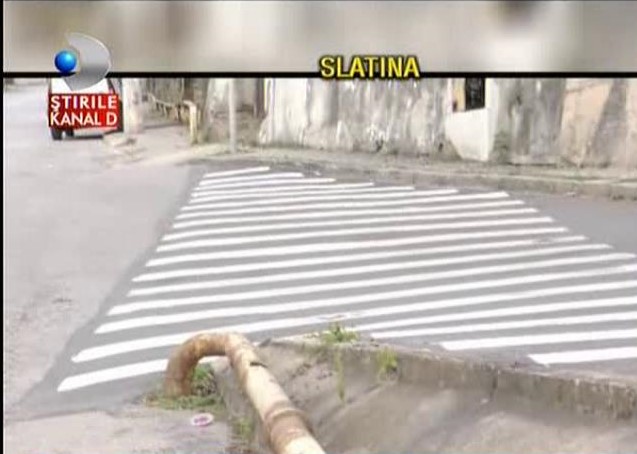 Minunile din Caracal s-au mutat in Slatina. Trei treceri de pietoni trasate peste noapte starnesc pur si simplu hohote de ras . ##VIDEO13879##