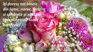 Trandafirii pe care i-ai adunat în cununa vieţii tale, lasă-i astăzi să se împletească într-un buchet al împlinirii. Fie ca florile iubirii să-ţi împodobească viaţa şi să-ţi vezi împlinite toate dorinţele.