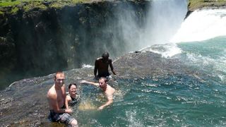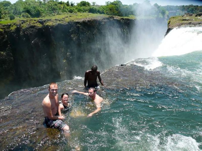 Pe cat de frumoasa e, pe atat e de dificil sa ajungi la ea. Cei care vor sa faca o baie in apele involburate ale piscinei, trebuie sa strabata un teren dificil si sa inoti raul Zambezi.