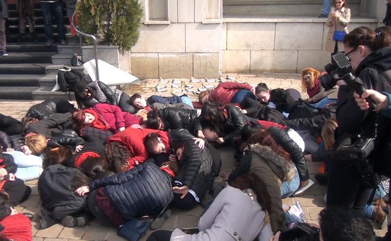 4 din 4 | Cele mai triste imagini de 8 Martie - S-au depus flori pentru ELE, dar din pacate nu le vor primi niciodata - Protest cu flori in fata Ministerului Justitiei din Bucuresti