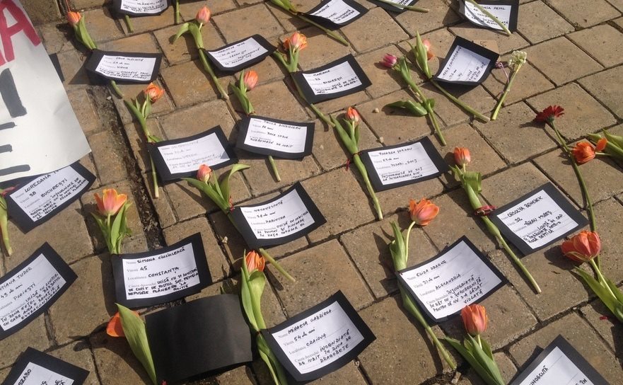 3 din 4 | Cele mai triste imagini de 8 Martie - S-au depus flori pentru ELE, dar din pacate nu le vor primi niciodata - Protest cu flori in fata Ministerului Justitiei din Bucuresti