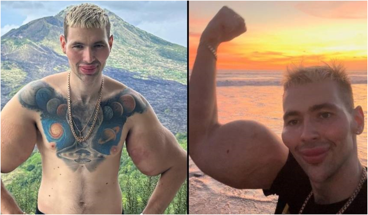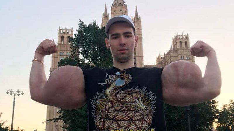 Cunoscut și sub numele de Popeye rus, Kirill Tereshin, în vârstă de 26 de ani, și-a construit o reputație online pe baza bicepșilor lui supraumflați în mod bizar și a lucrărilor faciale.